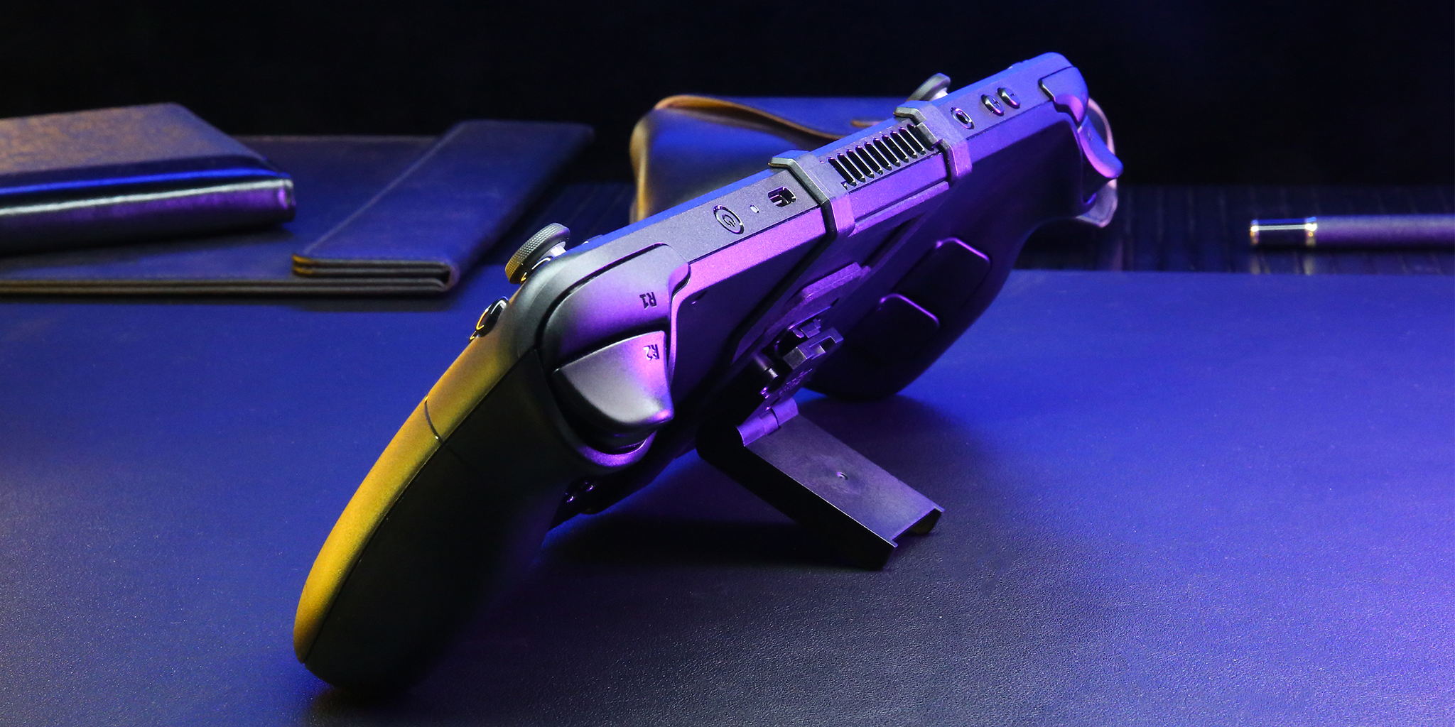We designed the kickstand with lightness and weight in mind. We wanted a kickstand that function properly while attached to the console with adding too much weight. In the end we decided on a thin minimal design to compliment the Steam Decks original shape.