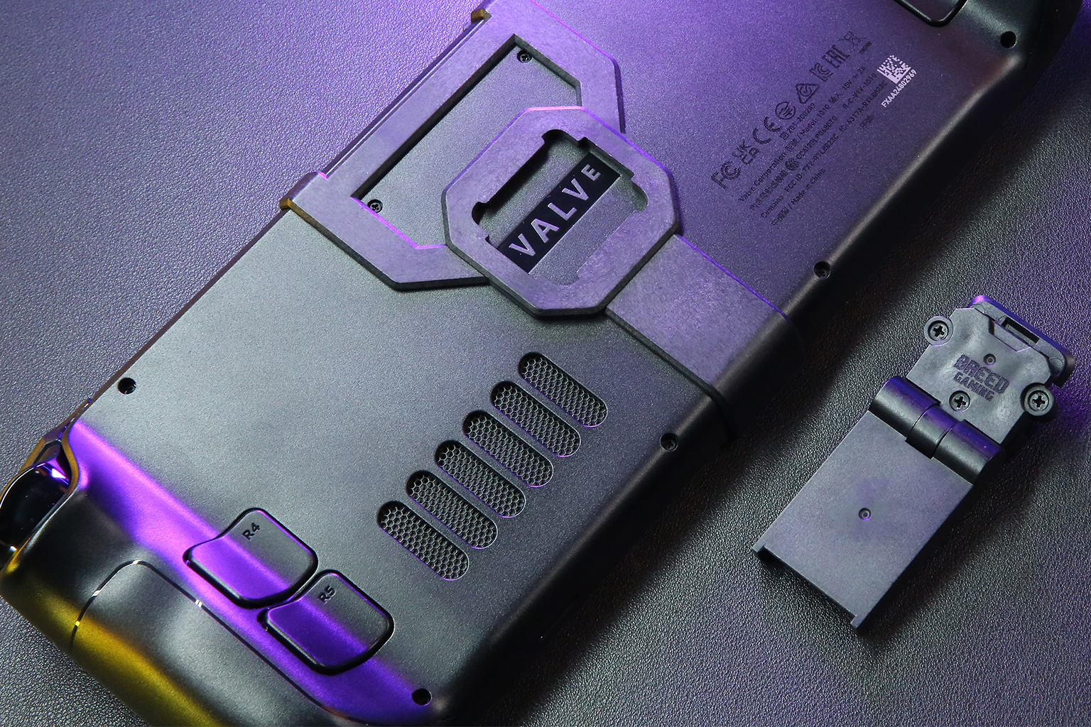 The Bracket incorporates vent ducts that align with the heat exhaust vents of the Steam Deck so that ventilation can function as normal and unobstructed to keep the device nice and cooled.