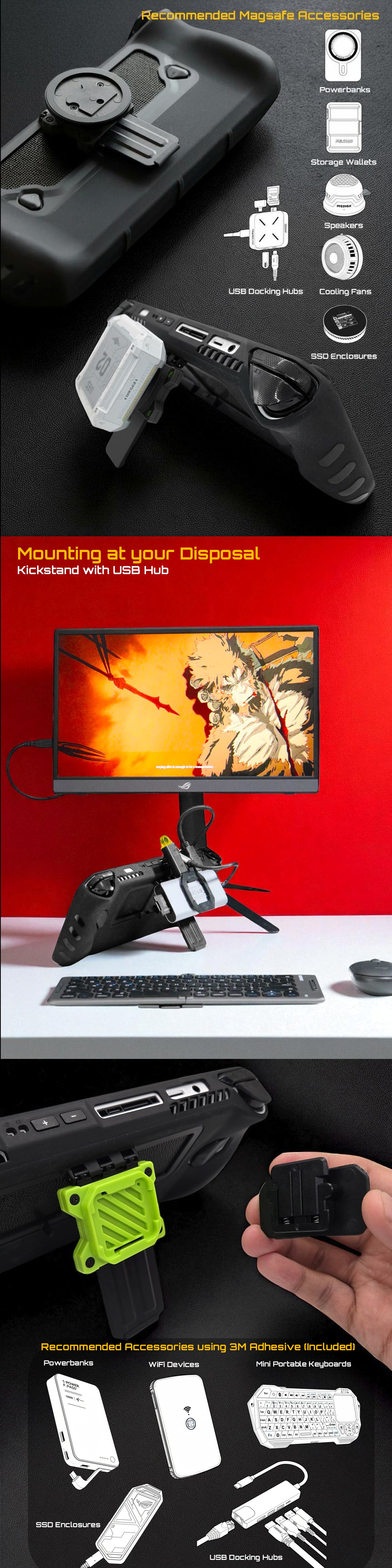 This comprehensive package is specifically crafted as a 'Pocket Knife' of attachments capable of holding a wide range of accessories of your choice, such as kickstands, power banks, storage wallets, docks, and more. It is designed specifically for the DBRAND Killswitch case for the original ASUS ROG ALLY and newest ALLY X models, catering to all your gaming needs.