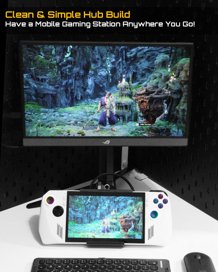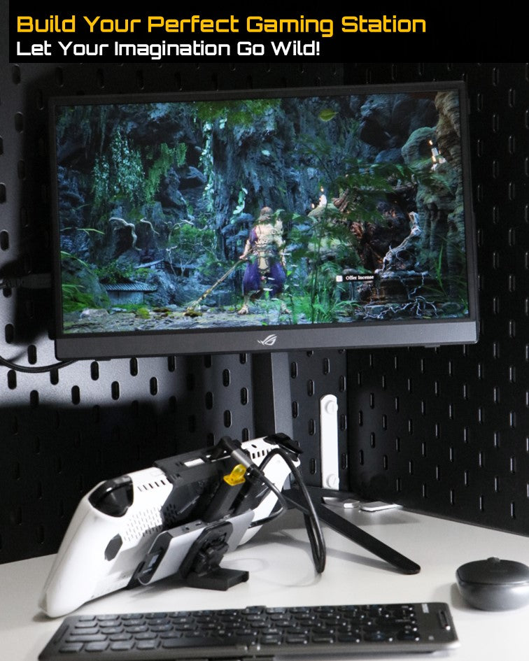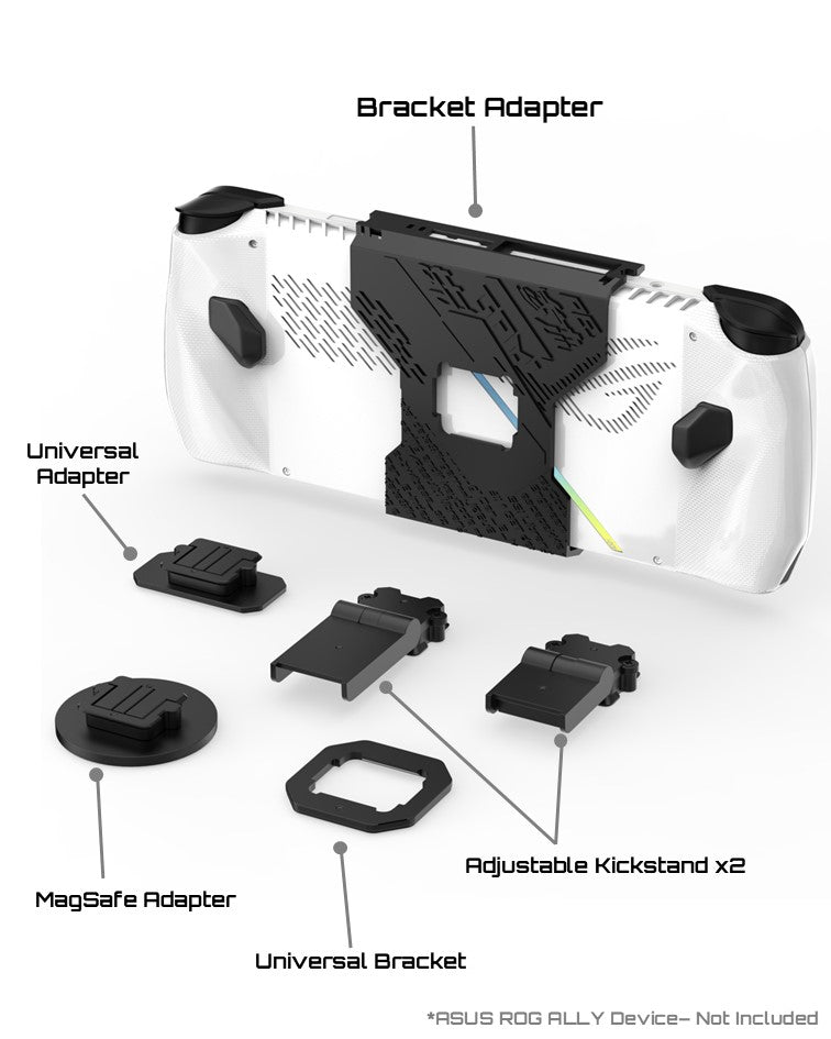 This comprehensive package is specifically crafted as a 'Pocket Knife' of attachments capable of holding a wide range of accessories of your choice, such as kickstands, power banks, storage wallets, docks, and more. It is designed specifically for the ASUS ROG Ally, catering to all your gaming needs.