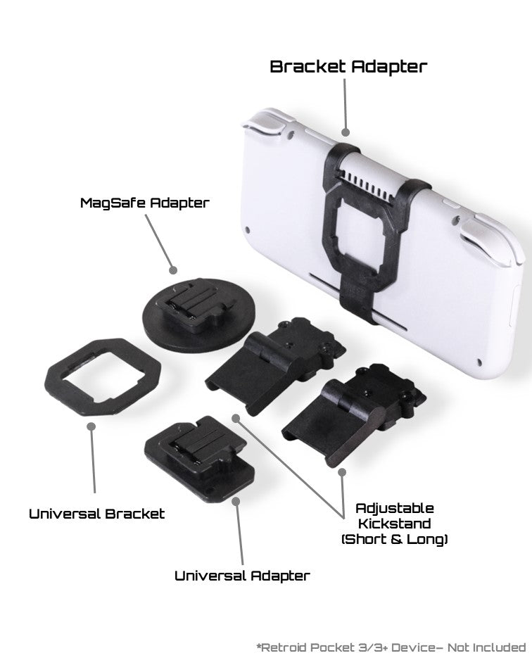 This comprehensive package is specifically crafted as a 'Pocket Knife' of attachments capable of holding a wide range of accessories of your choice, such as kickstands, power banks, storage wallets, docks, and more. It is designed specifically for the Retroid Pocket 3 & 3+, catering to all your gaming needs.
