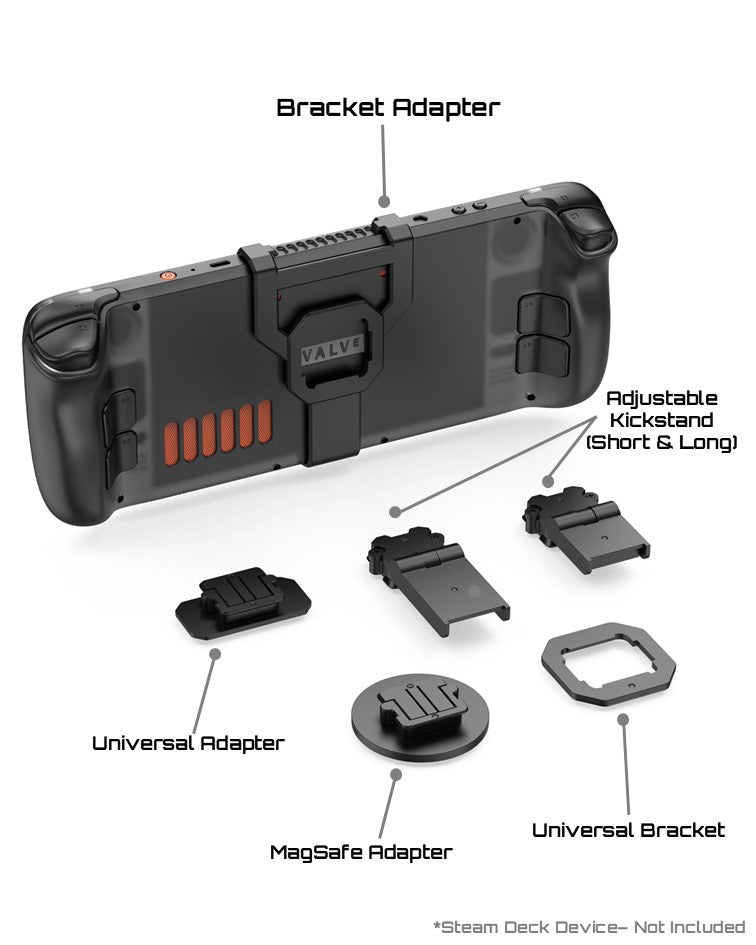 This comprehensive package is specifically crafted as a 'Pocket Knife' of attachments capable of holding a wide range of accessories of your choice, such as kickstands, power banks, storage wallets, docks, and more. It is designed specifically for the Valve Steam Deck, catering to all your gaming needs.